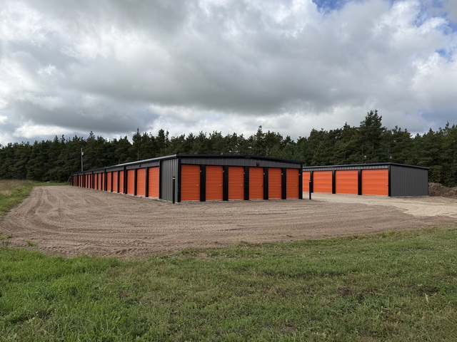 Brand new building - finished Oct 25’. It fits furnishings from a small house or two-three bedroom apartment with major appliances, many boxes and extras or hold a car or full size truck. (200 sq.ft.) Door is 9 feet wide and 8 feet tall.